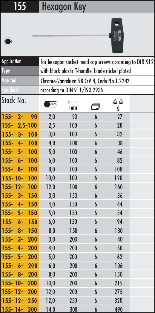 Designed for DIN 912 Hex Cap Screws. Manufactured according to DIN 911 and ISO 2936 standards |