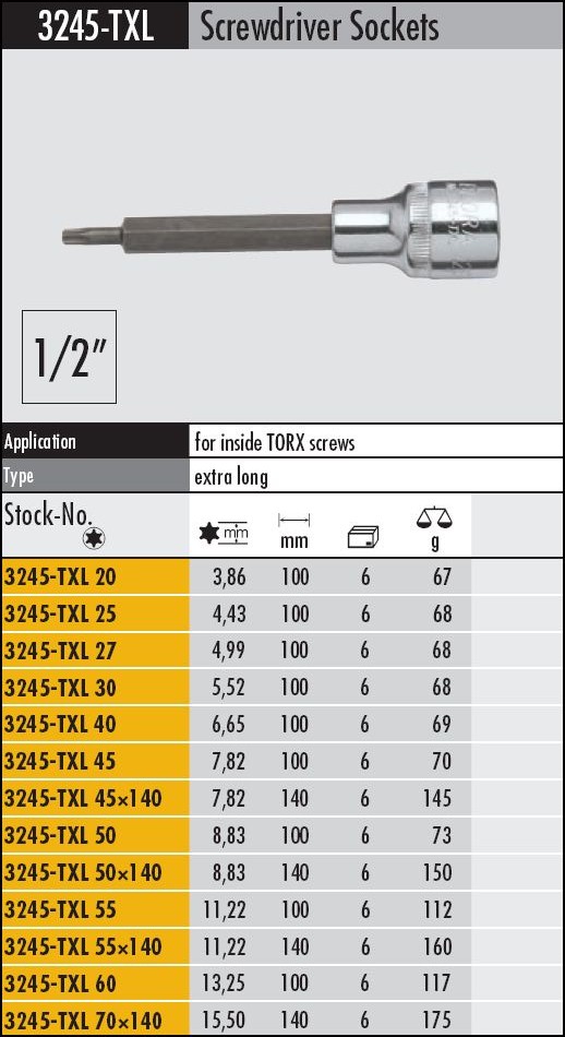 | Long shank Torx Bit Sockets Series 3245-TXL |