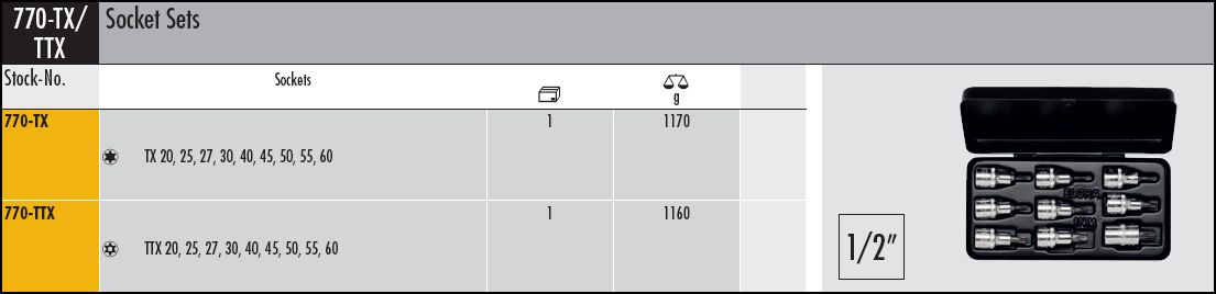 | 770-TX Torx bit set 1/2 in. Drive $ 198.59 |