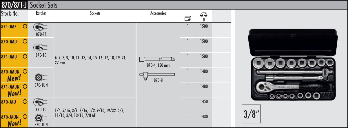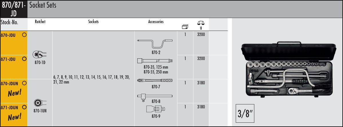 | 871 JDU 6 pt Metric Socket Set $ 450.35 On Sale for $ 270.21 |