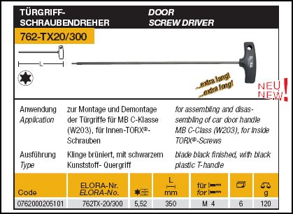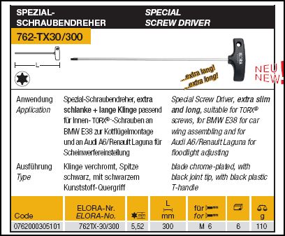 T30 T Handle Torx Screwdriver, for BMW E38 / Audi A6 300mm long 762TX-30/300 $ 21.76 |
