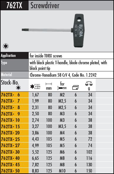 T45 T Handle Torx Screwdriver 762TX-45 $ 17.00 |