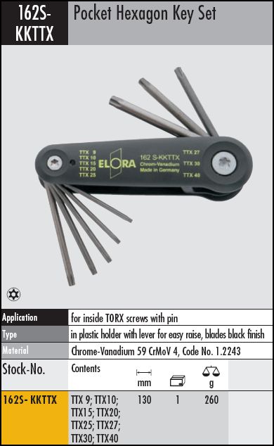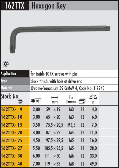162TTX Series Tamper proof Torx Key Wrenches Made in Germany |